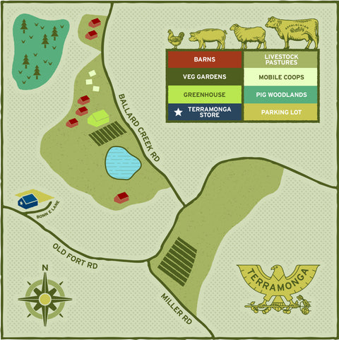 Terramonga means “the earth among us,” and that’s how we live—close to the land, hands in the soil, hearts in the work. We raise animals with respect, grow vegetables like our grandfolks did, and lean on each other like a good team should. Around here, you care for the land, it cares for you. Simple as that.